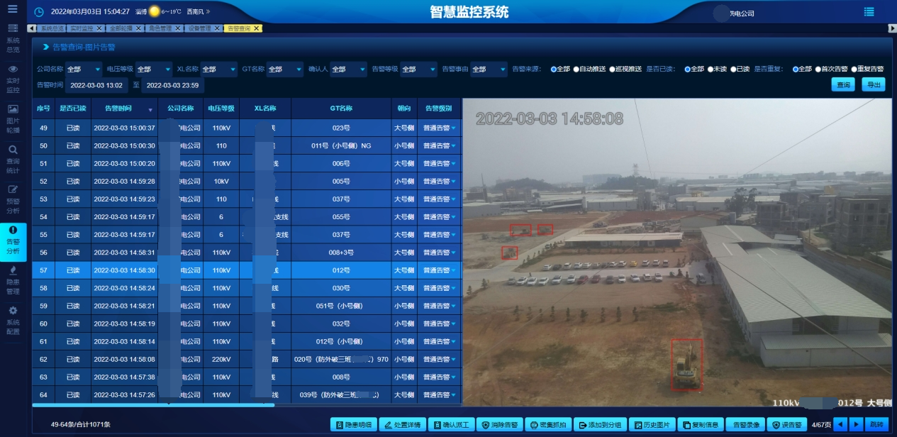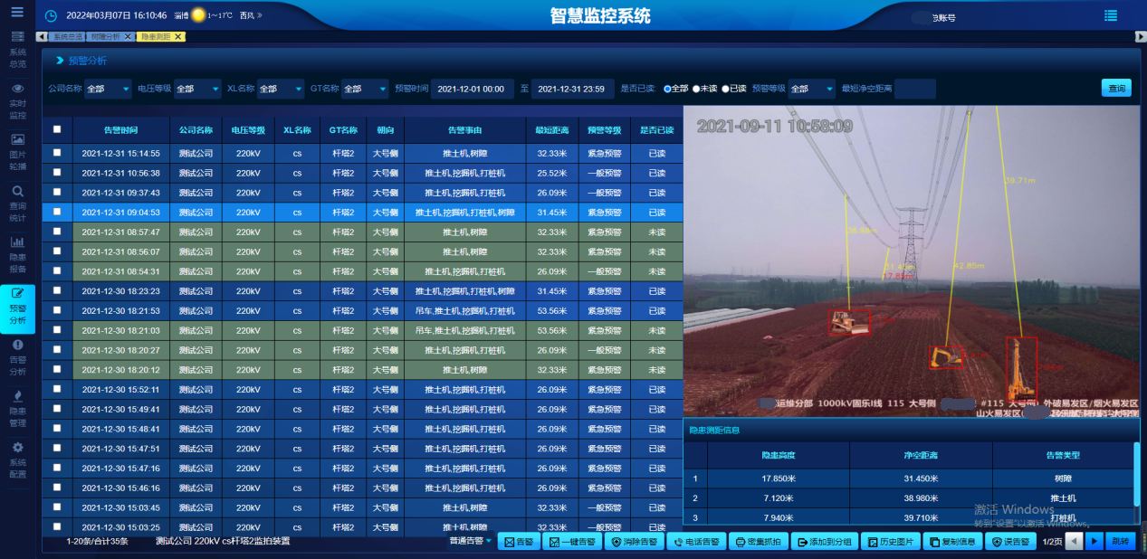 A complete hidden danger management system is used to realize the closed-loop process management of hidden danger early warning, push, disposal, resolution, and certificate retention, so as to truly solve the problem of stable operation and control of transmission lines.